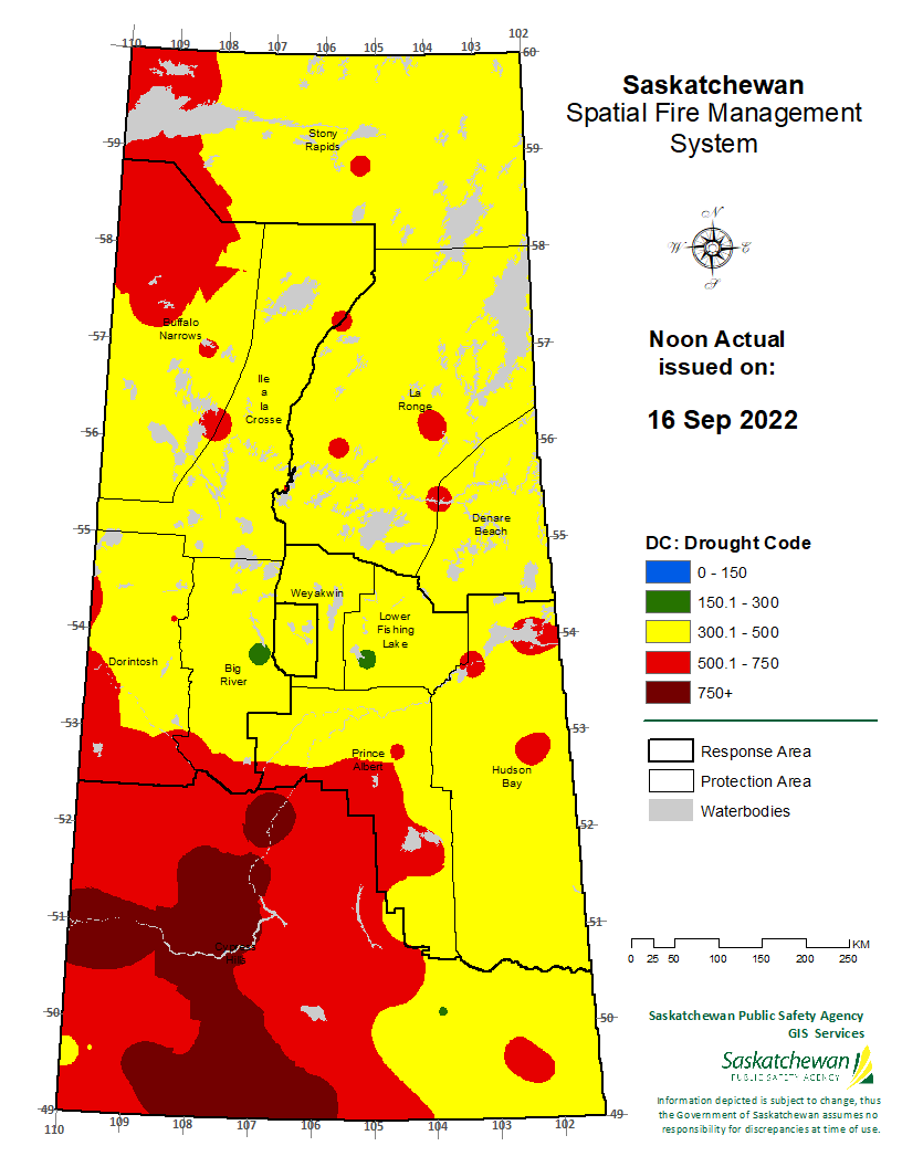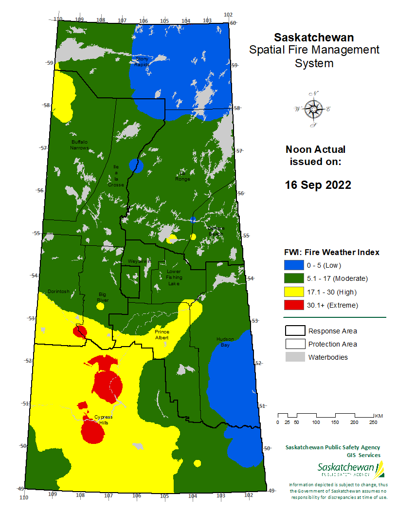 FWI actual forecast valid for 2022-09-16